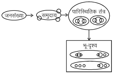 (c) जनसंख्या समुदाय पारिस्थितिक तंत्र मू-दृश्य
